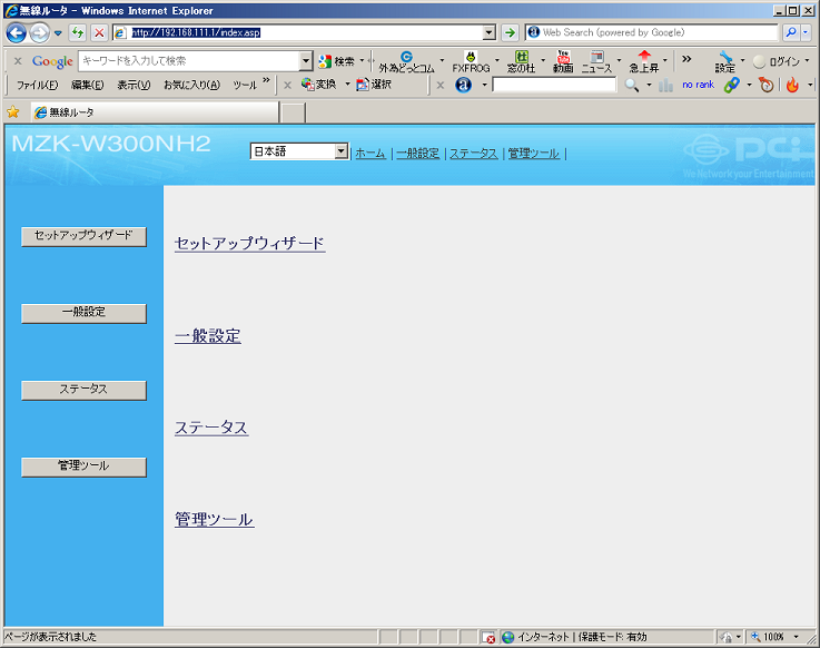 Sta ファームウェア 前の手首を返外のrom方法 mzk w300nh2 ファームウェア planex社製 mzkw300nh2; MZKW300NH2 ファームウェア Version 109; 1.mzkw300nh2のインターネットポートにonuを接続。 2.lanケーブルでpcとmzkw300nh2をインターネット以外の4ポートに有線接続。 3.mzkw300nh2はルーターモードで接続する。 4.mzkw300nh2の設定画面を出して、pppoeの設定情報を設定して保存、接続。